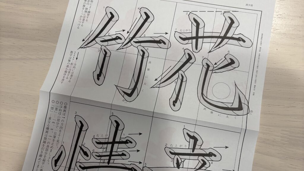お手本の裏には、筆の運び方や書き方のポイントが丁寧に書かれているので、初心者でも取り組みやすいと感じます。
